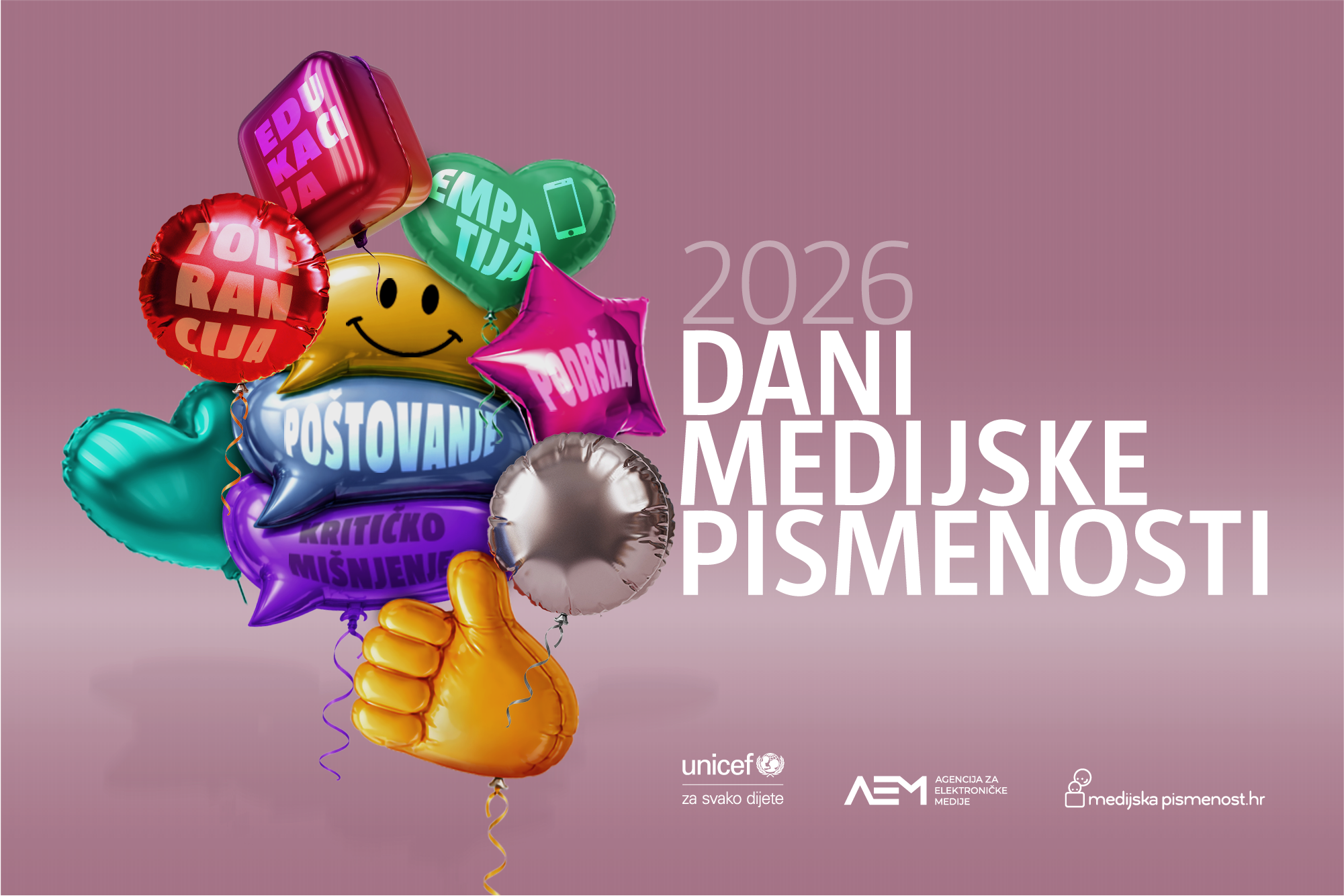 9. Dani medijske pismenosti održat će se od 20. do 26. travnja 2026. godine. Organiziraju ih Agencija za elektroničke medije i Ured UNICEF-a za Hrvatsku, a uključiti se mogu sve odgojno-obrazovne i kulturne ustanove, mediji, udruge i druge organizacije koje žele doprinijeti razvoju medijske pismenosti u Hrvatskoj