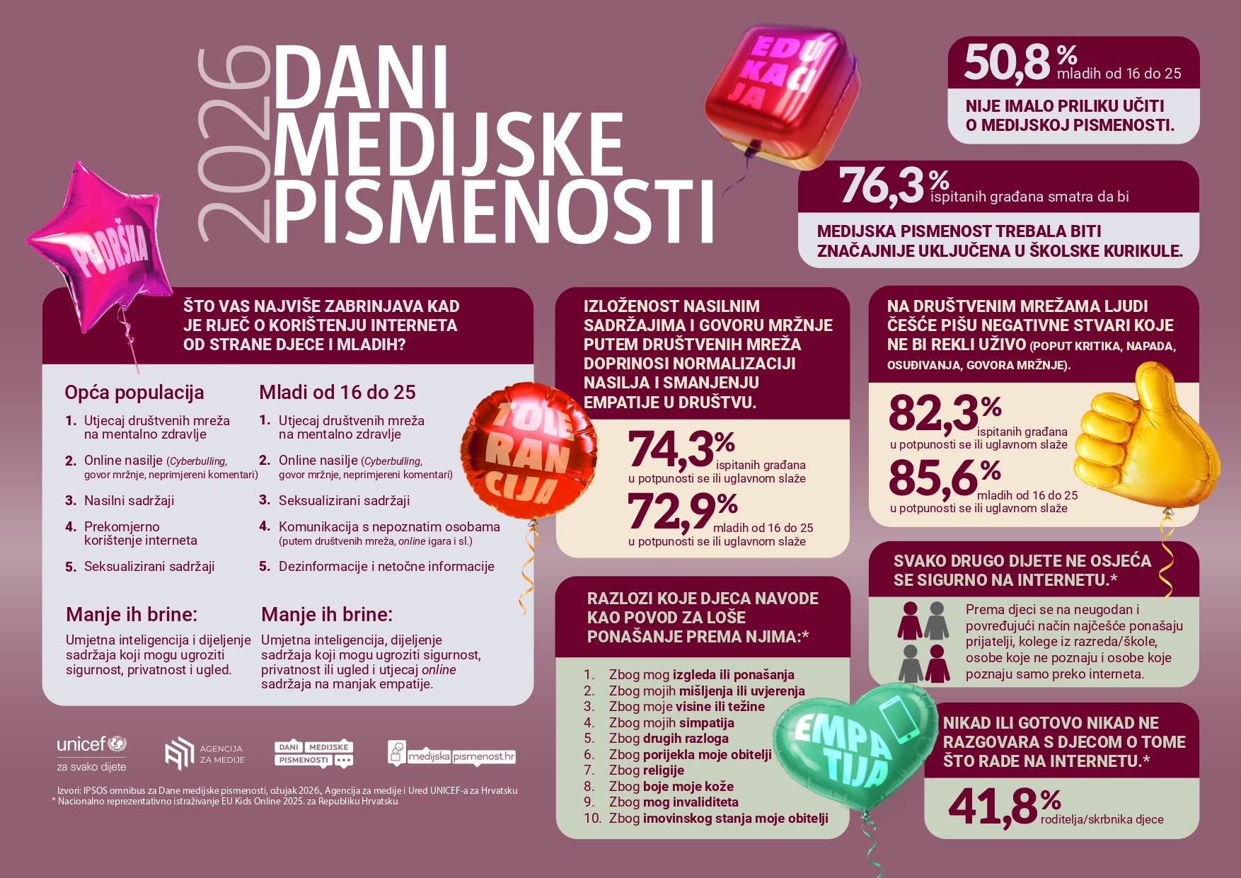 Koliko je važno sustavno omogućavati djeci i mladima da razvijaju vještine iz područja medijske pismenosti, ali i empatiju, pokazuju i rezultati istraživanja koje je za Agenciju za medije i UNICEF proveo Ipsos: