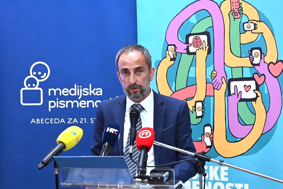 “U današnjem svijetu, kada se informacije šire nevjerojatnom brzinom i u velikoj količini, osobito je važno prepoznati točne i pouzdane informacije. Upravo zato od iznimne je važnosti od najranije dobi razvijati vještine koje omogućuju razumijevanje i kritičko korištenje medija. S obzirom na rastuću prisutnost digitalnih medija i snažan utjecaj društvenih mreža na mlade, naš je cilj da svi učenici razviju sposobnost kritičkog promišljanja medijskih sadržaja kako bi se zaštitili i postali odgovorni korisnici medija. U Hrvatskoj medijska pismenost postaje sve važniji dio školskih kurikuluma, a ona je kao međupredmetna tema već integrirana u različite nastavne predmete”, istaknuo je ministar znanosti, obrazovanja i mladih prof. dr. sc. Radovan Fuchs.